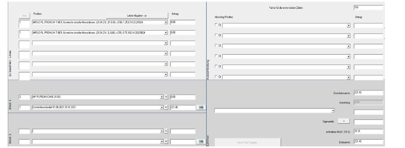 – diese Rechnung wird über das Kontaktlinsenmodul gedruckt